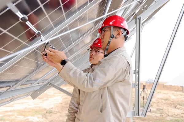 趙大虎坦言道:“只有看到安裝好的光伏板越來(lái)越多,心里才感覺(jué)踏實(shí)!”作為現(xiàn)場(chǎng)負(fù)責(zé)人,他一手抓施工進(jìn)度,督促總包單位按期完成光伏組件安裝、電氣施工、立塔架線等;一手抓設(shè)備材料供貨,組織各關(guān)鍵設(shè)備廠家成立供貨協(xié)調(diào)組,日常跟蹤督促設(shè)備到貨進(jìn)度,全力沖刺 “按時(shí)并網(wǎng)、爭(zhēng)創(chuàng)‘四優(yōu)’工程”的建設(shè)目標(biāo)。